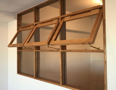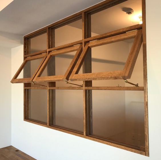 Jendela buka atas adalah pilihan bagus untuk rumah minimalis karena memberikan ventilasi yang baik bahkan ketika hujan turun. Mereka terbuka dari bagian bawah dan menekuk ke luar, menciptakan efek seperti tenda.. Jendela buka atas memungkinkan udara masuk ke dalam rumah tanpa khawatir air hujan masuk, sehingga ideall untuk area dengan cuaca yang tidak menentu.
