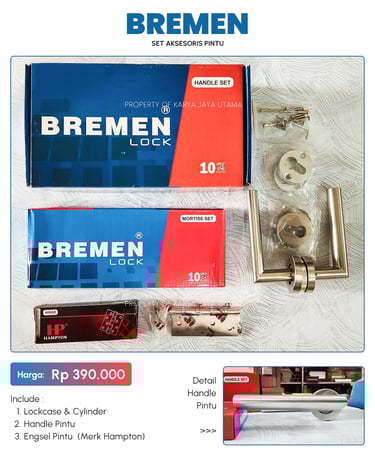 Tidak hanya pintu, kami juga menyediakan set aksesorisnya. Tersedia 4 merk: